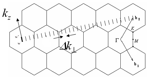 $${\vec C_h}.{\vec k_\parallel } = 0\quad,\quad\vec T.{\vec k_\parallel } = 2\pi$$