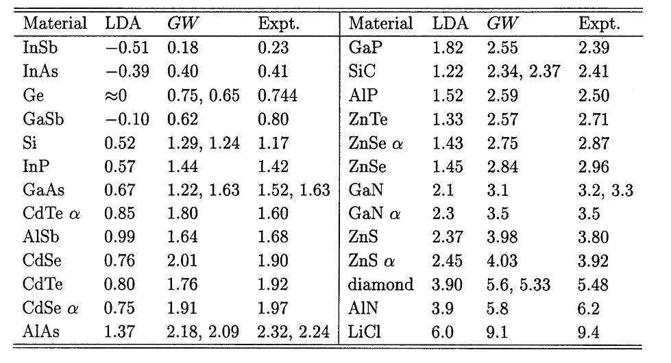 همان طورکه مشاهده میشود مقادیر انرژی گپی که با تقریب GW بدست آمده است، موافقت بیشتری با مقادیر آزمایشگاهی دارد. این نتیجه میتواند اثباتی برای موفقیت این نظریه در پیشبینی مقدار گپ نواری باشد.