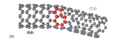 در این اتصال دو نانولوله کربنی با خواص الکتریکی متفاوت به هم متصل شدهاند.